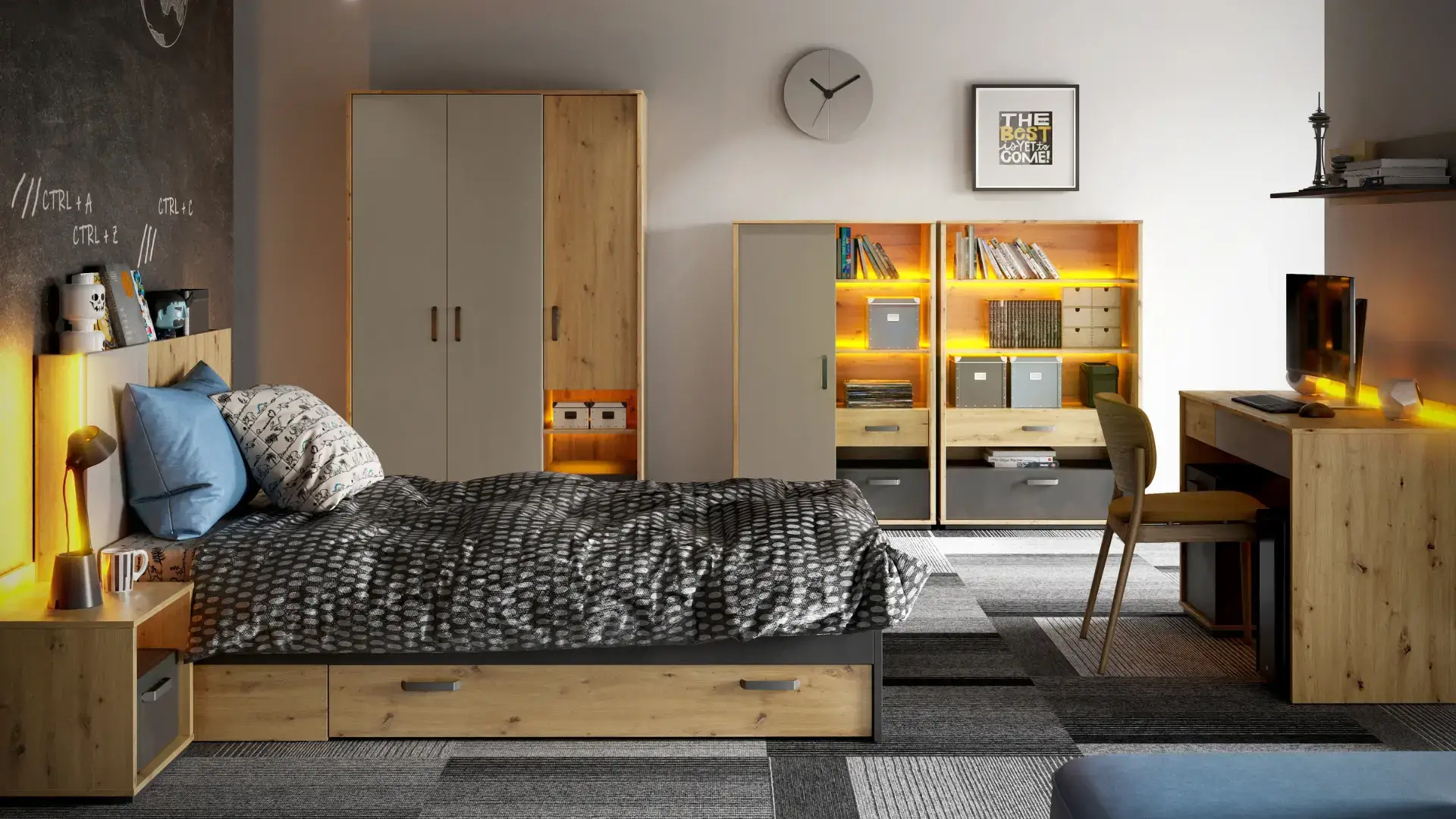 W przypadku mniejszych pokoi świetnym wyborem są meble o wielu funkcjach. Dzięki nim można w pełni wykorzystać dostępną przestrzeń. Niezwykle istotny jest także minimalizm – wybierając mniej, ale bardziej funkcjonalnych mebli, łatwiej utrzymać porządek. Na przykład, szafy z przeszklonymi drzwiami nie tylko ułatwiają dostęp do rzeczy, ale także sprzyjają lepszej organizacji.