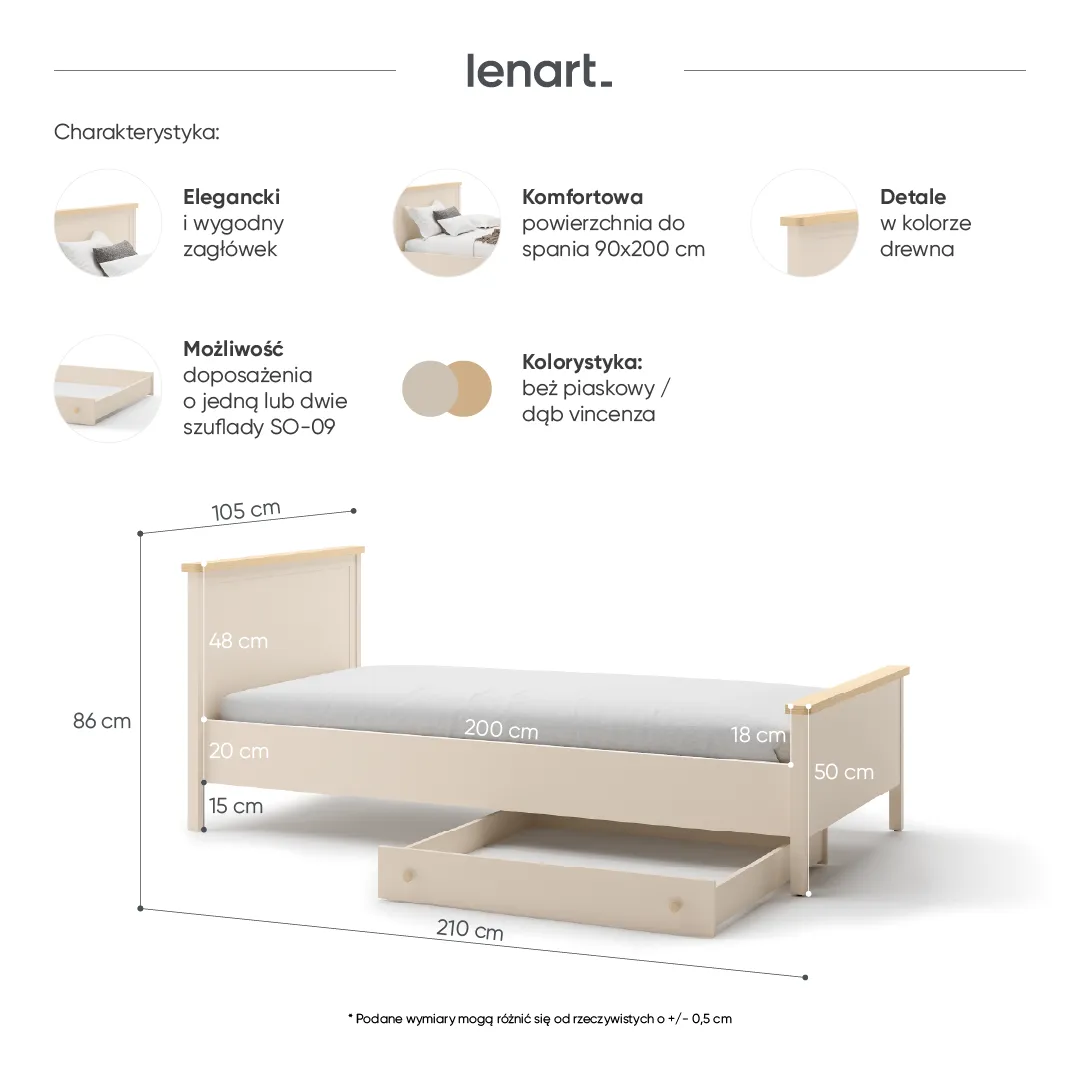 Łóżko można skompletować z szufladami na pościel (SO-09).