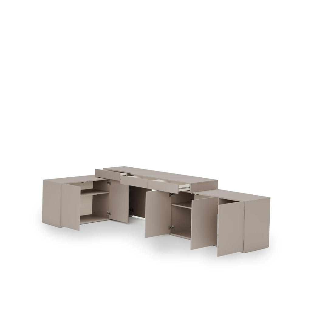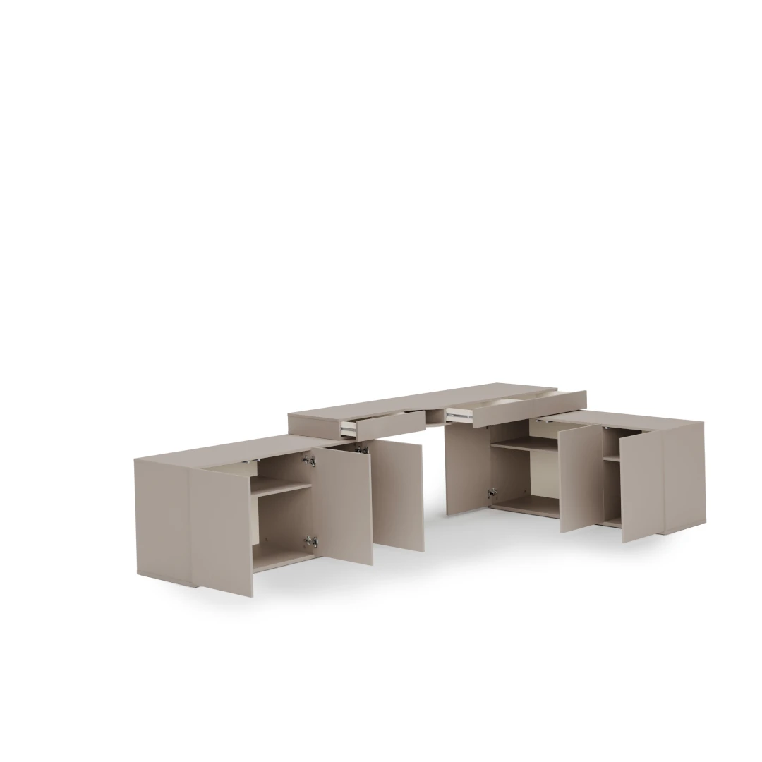 Zestawy młodzieżowe zawierają ergonomiczne biurko z szufladami ułatwiające organizację materiałów do nauki. Meble modułowe można dowolnie konfigurować, dostosowując je do indywidualnych potrzeb i metrażu pokoju.