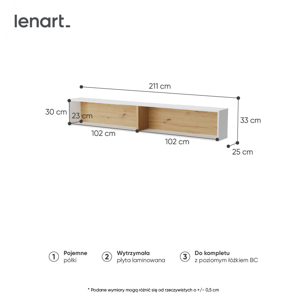 Funkcjonalna i modna półka z przegrodą jest idealna do zestawienia z półkotapczanem o orientacji poziomej. Dzięki niej z łatwością wyeksponujesz swoje ulubione książki, zdjęcia i dekoracje. Dostępna jest w różnych modnych kolorach, co pozwala na dopasowanie jej do Twojego wnętrza. Wykorzystanie powierzchni ścian do przechowywania nie tylko oszczędza przestrzeń, ale także ułatwia organizację rzeczy codziennego użytku. Stwórz nowoczesną i funkcjonalną zabudowę, która odmieni Twój pokój!
