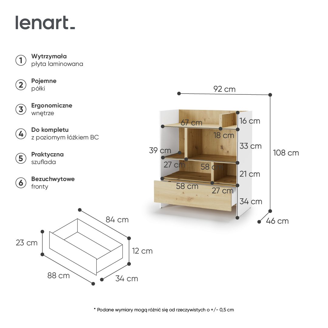 Materiał dna szuflady: płyta HDF; 3mm