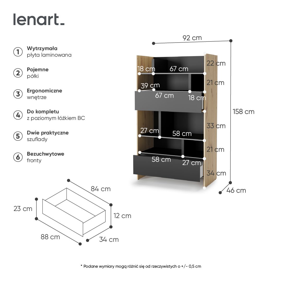 Kolory: dąb artisan/czarny