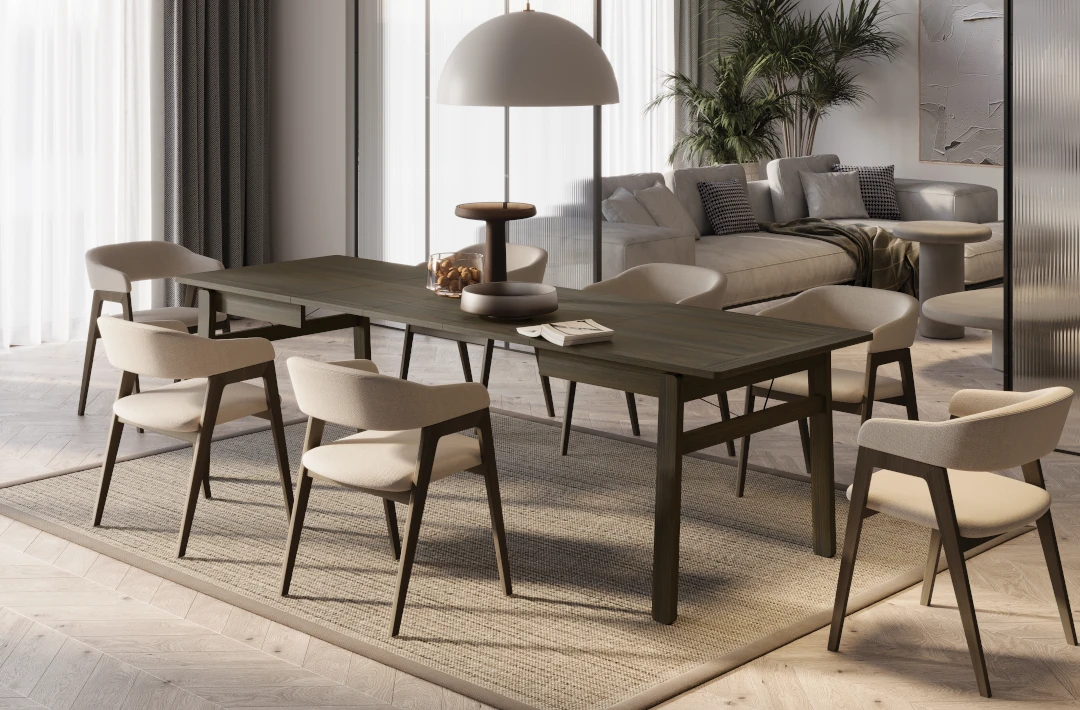 Solidna konstrukcja i precyzyjne wykonanie to gwarancja trwałości i stabilności. Prostokątny stół rozkładany w ciemnym dębie jest wykonany z najwyższej jakości materiałów, dzięki czemu jest odporny na uszkodzenia i codzienne użytkowanie. Możliwość zwiększenia powierzchni stołu w kilka chwil sprawia, że zyskujesz elastyczność i komfort w każdej sytuacji.