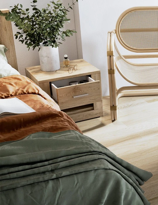 Stolik nocny ARTI jest dostępny w kilku wersjach kolorystycznych, co pozwala łatwo dopasować ją do różnych wnętrz.