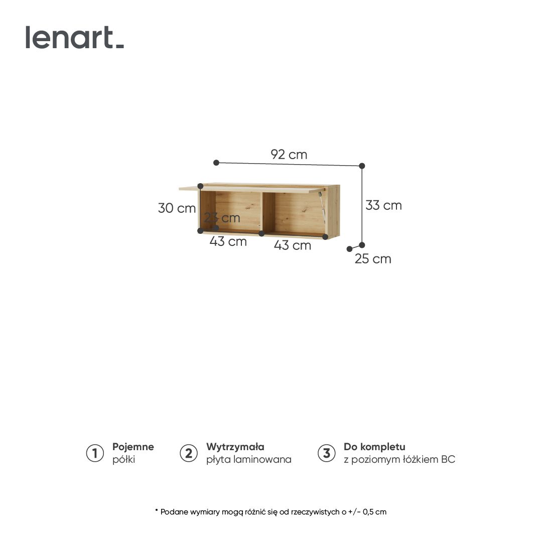 Szukasz funkcjonalnego i estetycznego rozwiązania, które pomoże Ci zaoszczędzić przestrzeń w Twoim pokoju? Szafka wisząca BC-29 w połączeniu z półkotapczanem o orientacji poziomej to idealne rozwiązanie dla Ciebie! Dostępna jest w kilku modnych i ponadczasowych kolorach, co pozwala na dopasowanie jej do Twojego stylu oraz gustu. Stwórz nowoczesną zabudowę, która ułatwi organizację i uporządkowanie różnych przedmiotów w Twoim pokoju. Dodatkowo wykorzystując powierzchnię ścian do przechowywania oszczędzasz przestrzeń i dodajesz jej wyjątkowego charakteru!