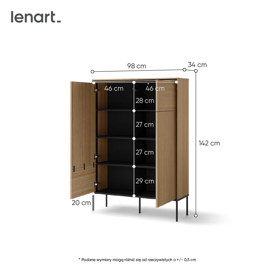 Nasza wysoka komoda do sypialni doskonale wpasuje się w różnorodne aranżacje wnętrz. Niezależnie od tego, czy preferujesz nowoczesny minimalizm, klasyczną elegancję czy przytulny styl skandynawski, ten mebel będzie idealnym dopełnieniem Twojej sypialni.